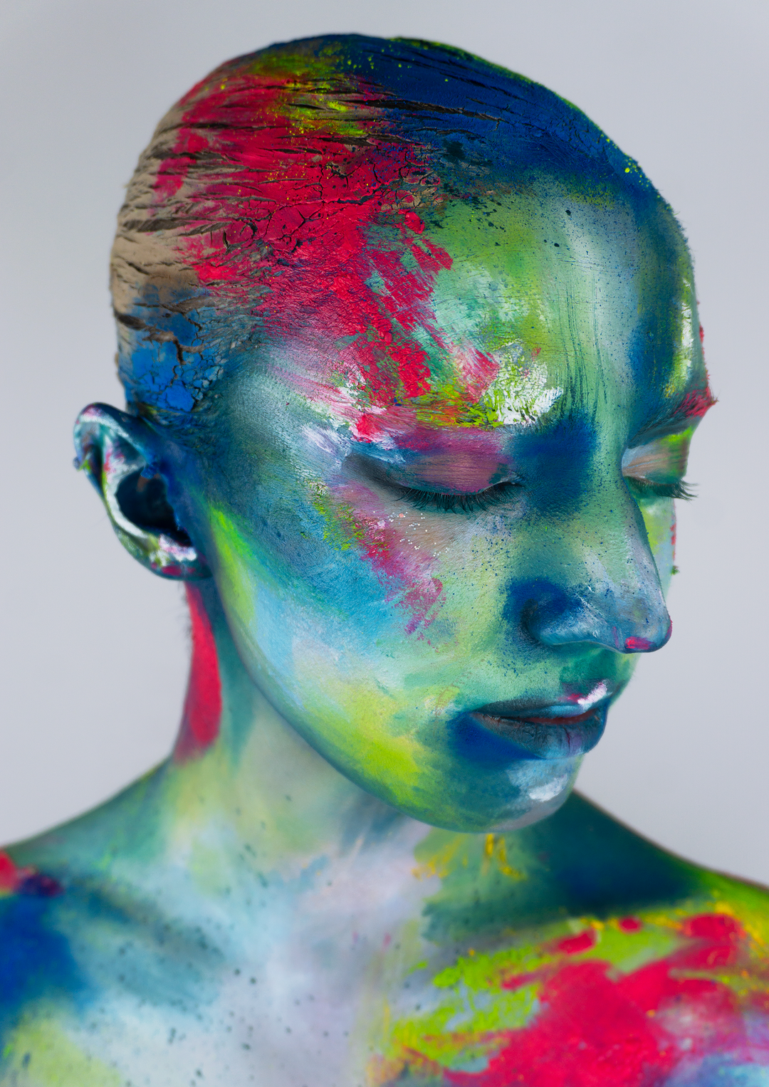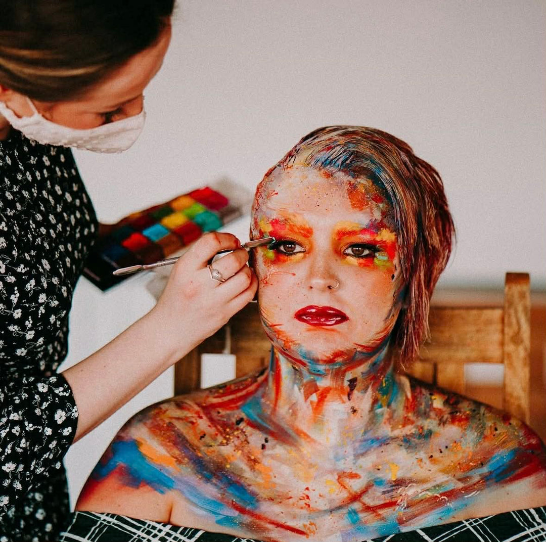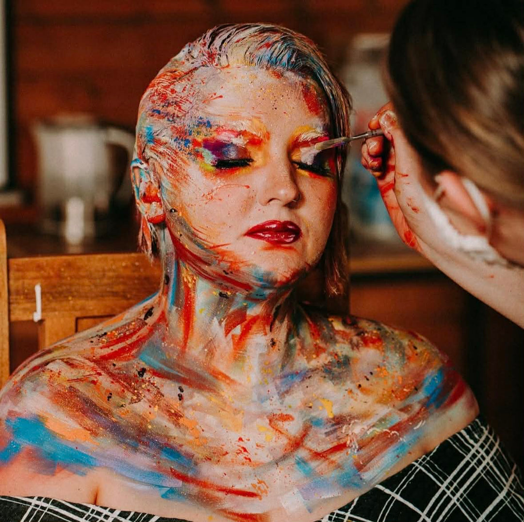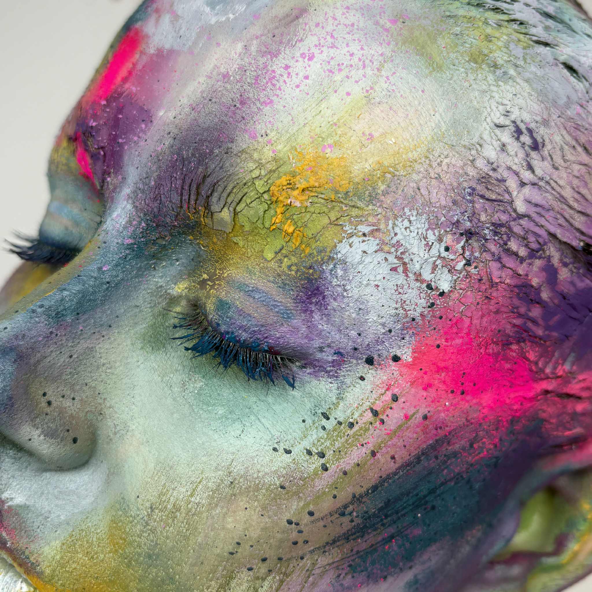 Become the Muse is a one-to-one fine art experience where I transform your face, neck and shoulders into an expressive artwork using my signature painterly techniques, abstract textures, and materials.